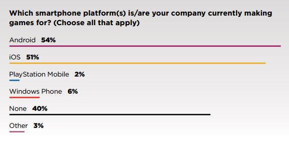 40 percent of respondents said they weren’t making games for any mobile platforms right now.