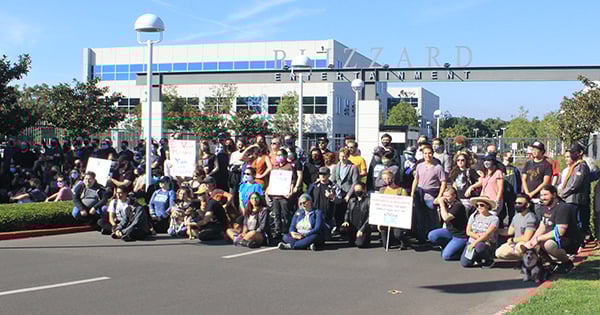 A repeated greeting at today’s Activision Blizzard walkout–the second one in less than six months–was the phrase “well here we are again.”