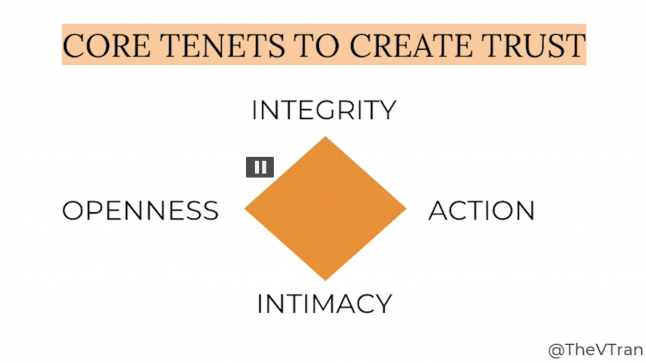 Often, you are the primary and perhaps only window inside your game and your studio. So you need to build and keep trust; to do that, Tran recommends you stick to the core tenets of integrity, openness, action, and intimacy.