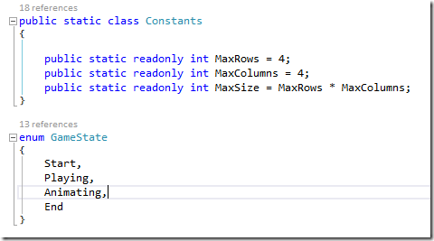 We’ll also have an enumeration for the states of our game plus some constants for our columns and rows count.
