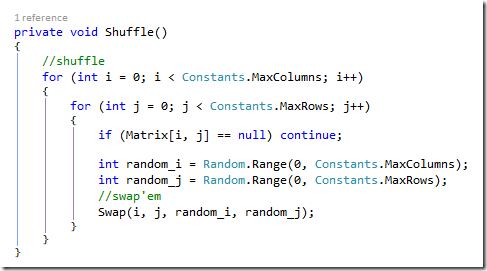 The Shuffle method randomly swaps each puzzle pieces with another one.