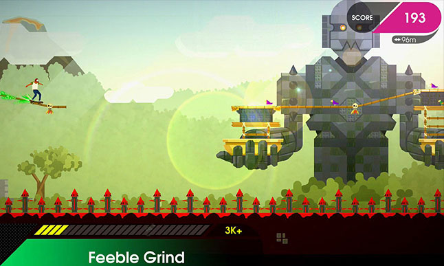 “OlliOlli is a game about failure and improvement, it’s a game that also requires players to be consistent,” Ribbins says. “You could practice as much as you wanted, figuring out your highest scoring line, but as soon as you hit the ‘do it for real’ button, it was on. The practices meant nothing, it was all down to doing it live on that one attempt. This fitted in nicely with the idea of being consistent.”